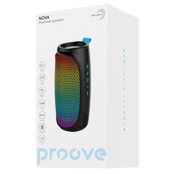 Su color negro, la combinación de plástico ABS con malla de tela y silicona crean una apariencia elegante que se integra a la perfección en cualquier interior. Su tamaño compacto y diseño ligero hacen de Nova el compañero perfecto para el hogar y para viajes.
