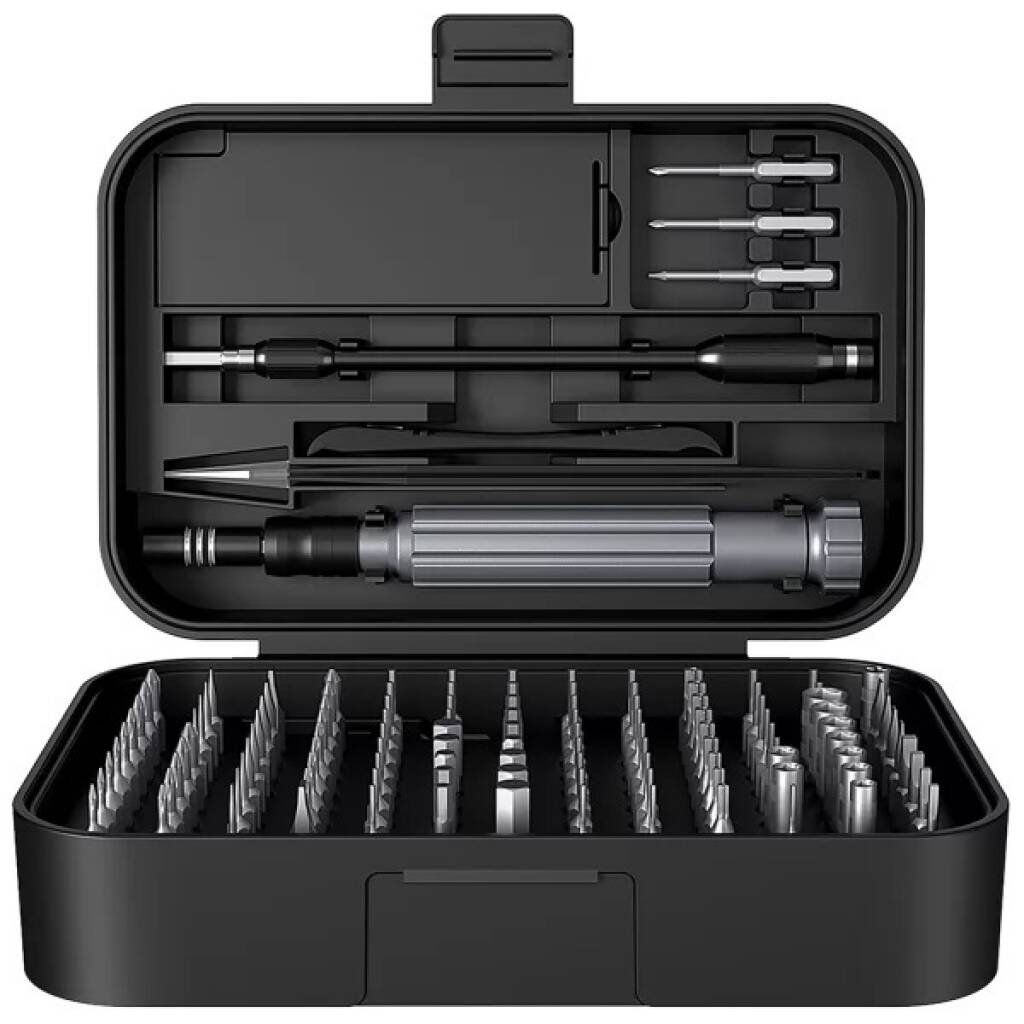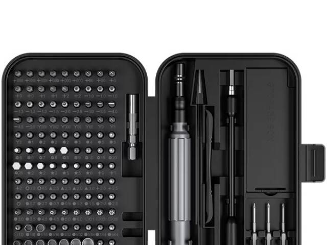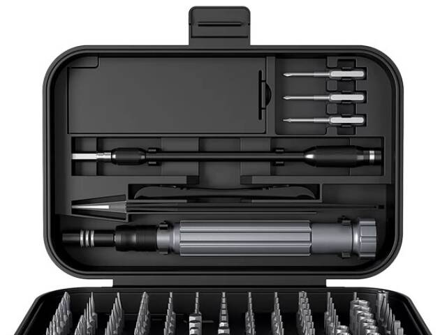 un destornillador con puntas intercambiables, puntas, pinzas, una ventosa, una llave para la bandeja de la tarjeta SIM y un perforador.