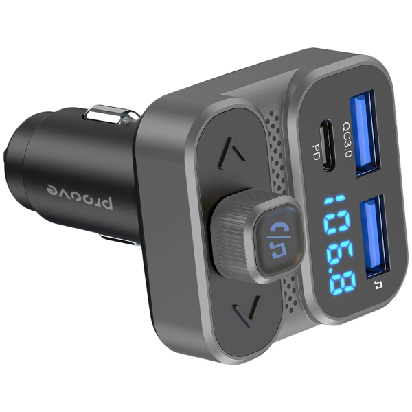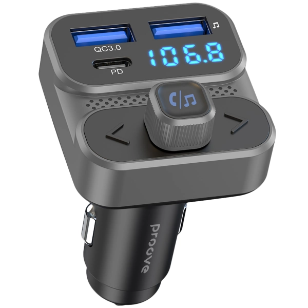 El transmisor está equipado con potentes puertos USB y PD(Tipo C) para una carga rápida de tus dispositivos.