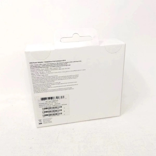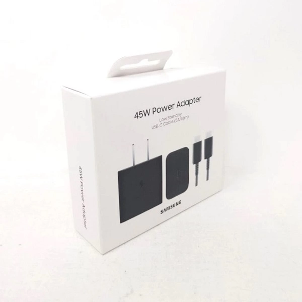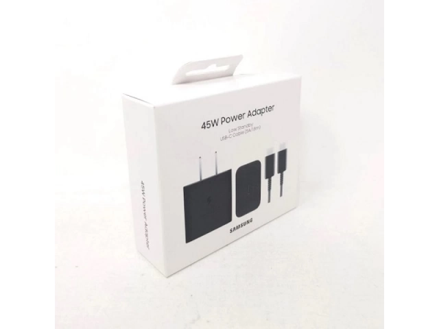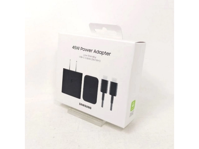 El cargador Samsung EP-T4511XBEGCA es un cargador de pared USB-C de 45W que ofrece carga superrápida, especialmente para dispositivos Samsung Galaxy. Incluye un cable USB-C a USB-C de 1.8 metros.