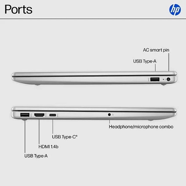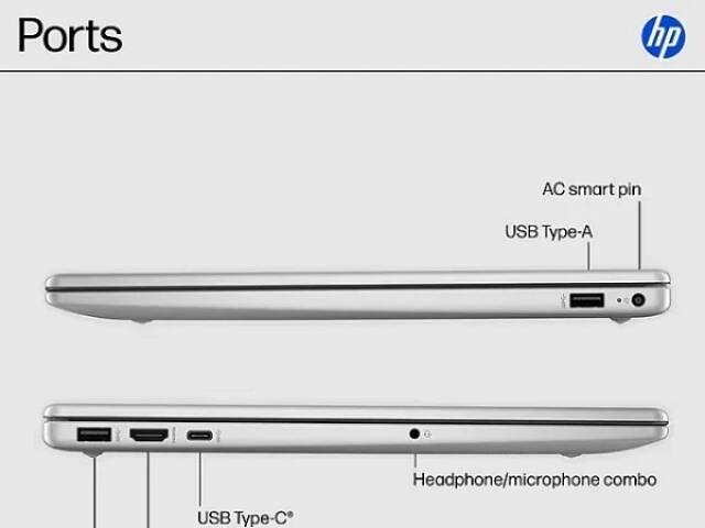 Puertos físicos: 1 USB Tipo-C® (5 Gbps, solo datos), 2 USB Tipo-A (5 Gbps), 1 HDMI 1.4b, 1 pin inteligente de CA y 1 combo de audífonos/micrófono.