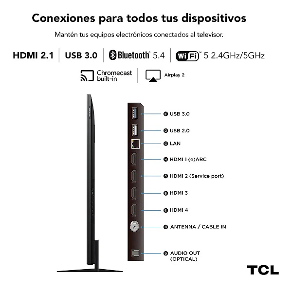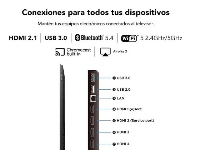 Puertos HDMI: 4 entradas HDMI 2.1 con soporte 4K a 144Hz, eARC, ALLM y VRR