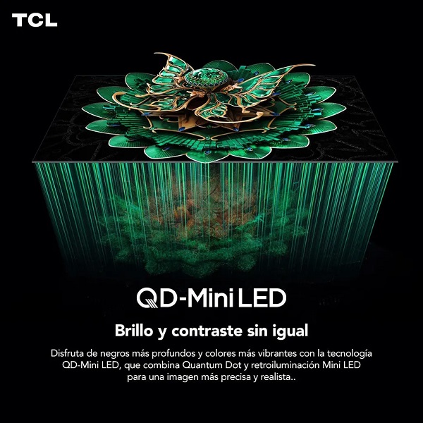Gracias a su retroiluminación Mini LED de última generación el televisor alcanza niveles de brillo y contraste imposibles de lograr en pantallas convencionales permitiendo negros perfectos y blancos brillantes simultáneamente.